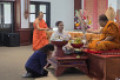 การใส่บูชา "ขันข้าวพระสงฆ์" เพื่อถวายภัตตาหารแด่พระสงฆ์ ประกอบด้วย อาหารคาวหวาน และเครื่องดื่ม