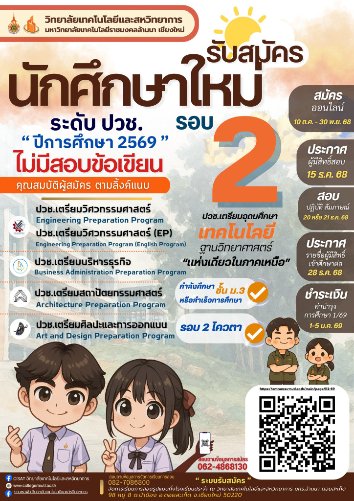 กำหนดการรอบ 2 ประจำปี 2569 (ระดับ ปวช. / ป.ตรี)