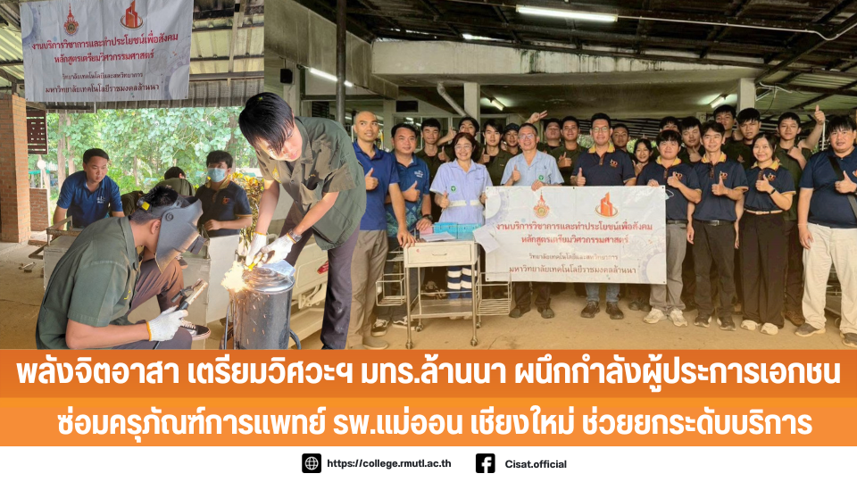 เมื่อวันที่ 9 ตุลาคม 2568 หลักสูตรเตรียมวิศวกรรมศาสตร์ มหาวิทยาลัยเทคโนโลยีราชมงคลล้านนา (มทร.ล้านนา) นำโดยหัวหน้าหลักสูตร ได้นำทีมคณาจารย์ บุคลากร และนักศึกษา จัดกิจกรรมงานบริการวิชาการและทำประโยชน์เพื่อสังคม ด้วยการซ่อมแซมอุปกรณ์ทางการแพทย์ให้กับโรงพยาบาลแม่ออน จังหวัดเชียงใหม่ เพื่อสนับสนุนบุคลากรทางการแพทย์ให้มีอุปกรณ์พร้อมใช้งาน และช่วยยกระดับการให้บริการแก่ผู้ป่วยอย่างมีประสิทธิภาพ