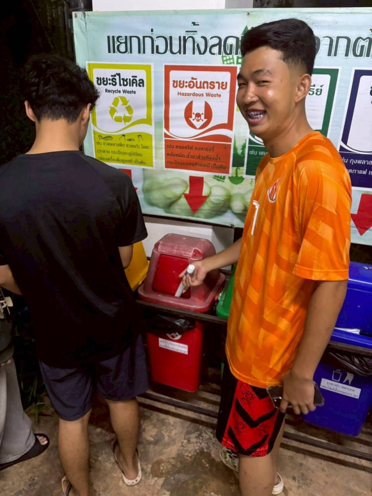อนึ่ง การดำเนินการในฝ่ายของวิทยาลัยเทคโนโลยีและสหวิทยาการ เป็นการประสานร่วมมือกันระหว่างงานหอพักนักศึกษา คณาจารย์ คณะนักศึกษา คณะทำงานจากกองพัฒนาอาคารสถานที่ ทีมงานแม่บ้านและชุมชนใกล้เคียงพื้นที่ มทร. ล้านนา (ดอยสะเก็ด) ที่ร่วมกันทำกิจกรรมส่งเสริมการแยกแยกขยะขวดพลาสติกและขยะอิเล็กทรอนิกส์ในลักษณะต่าง ๆ อาทิ กิจกรรม “ทิ้ง FOR เทิร์น : ขยะแลกรางวัล” เป็นต้น ทั้งนี้ ผ่านการกำกับเชิงนโยบายของ ดร. ปวียา รักนิ่ม ผู้ช่วยอธิการบดี มทร. ล้านนา ดร. นพดล มณีเทียร ผู้อำนวยการวิทยาลัยฯ และมี ผู้ช่วยศาสตราจารย์ ดร. นคร สุริยานนท์ พร้อมด้วย ดร. วนิดา สุริยานนท์ สาขาวิศวกรรมโยธาและสิ่งแวดล้อม คณะวิศวกรรมศาสตร์ ให้คำปรึกษาตลอดโครงการ