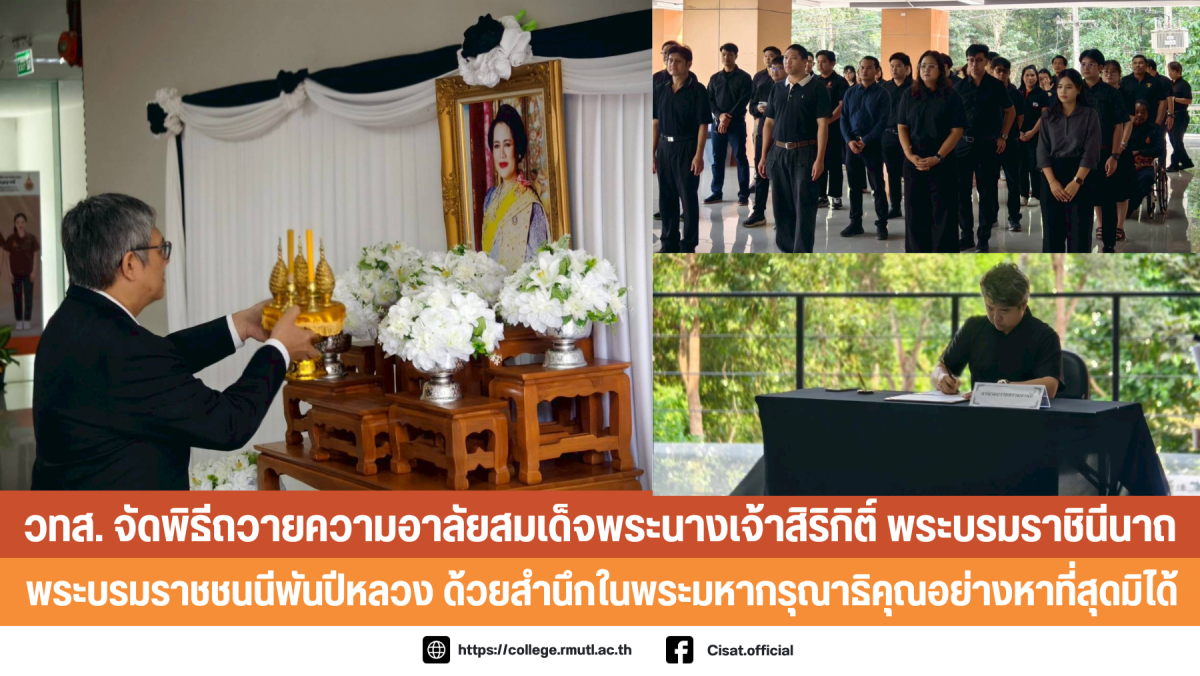 เมื่อวันที่ 14 พฤศจิกายน 2568 เวลา 09.30 น. ณ บริเวณด้านหน้าโถงชั้น 2 อาคาร S2 วิทยาลัยเทคโนโลยีและสหวิทยาการ ได้จัดพิธีน้อมถวายความอาลัย สมเด็จพระนางเจ้าสิริกิติ์ พระบรมราชินีนาถ พระบรมราชชนนีพันปีหลวง ด้วยสำนึกในพระมหากรุณาธิคุณอย่างหาที่สุดมิได้
