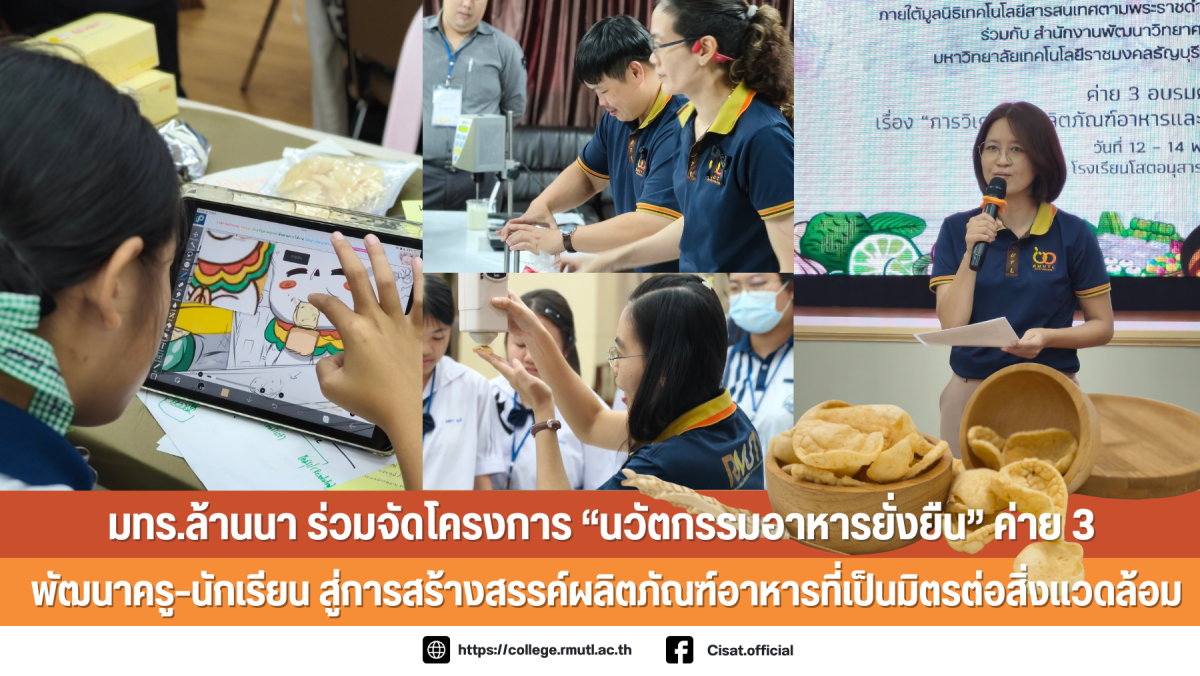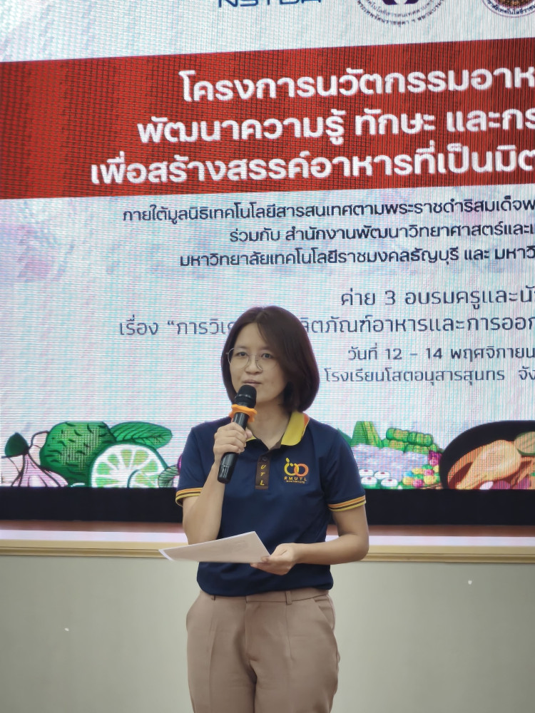 มูลนิธิเทคโนโลยีสารสนเทศตามพระราชดำริสมเด็จพระเทพรัตนราชสุดาฯ สยามบรมราชกุมารี ภายใต้ความร่วมมือระหว่างสำนักงานพัฒนาวิทยาศาสตร์และเทคโนโลยีแห่งชาติ (สวทช.) มหาวิทยาลัยเทคโนโลยีราชมงคลธัญบุรี และมหาวิทยาลัยเทคโนโลยีราชมงคลล้านนา ได้จัดโครงการ “นวัตกรรมอาหารยั่งยืน พัฒนาความรู้ ทักษะ และกระบวนการคิดเพื่อสร้างสรรค์อาหารที่เป็นมิตรกับสิ่งแวดล้อม : ค่าย 3 อบรมครู- นักเรียน ในหัวข้อ "การวิเคราะห์ผลิตภัณฑ์อาหารและการออกแบบบรรจุภัณฑ์เพื่อความยั่งยืน"