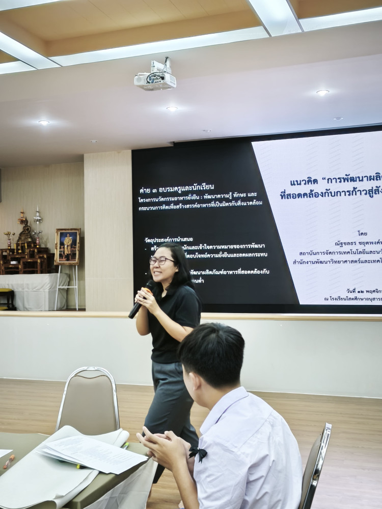 กิจกรรมจัดขึ้นระหว่างวันที่ 12 – 14 พฤศจิกายน 2568 ณ โรงเรียนโสตศึกษาอนุสารสุนทร โดยมุ่งหมายให้ผู้เข้าร่วมได้รับความรู้และทักษะด้านการพัฒนาผลิตภัณฑ์อาหารที่ตอบโจทย์แนวคิดความยั่งยืน รวมถึงการนำไปประยุกต์ใช้ในการสร้างมูลค่าเพิ่มแก่ผลิตภัณฑ์ในอนาคต
